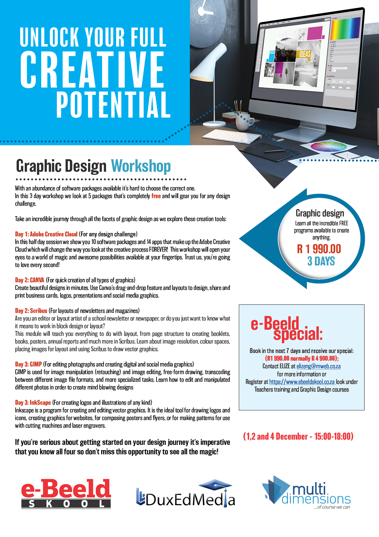 Hier is geleentheid vir leerders, studente, onderwysers en ouers om Entrepreneurs te word en wonderlike vaardighede te bemeester in die wêreld van digitale ontwerp, bemarking, fotografie, sosiale media en nog meer.